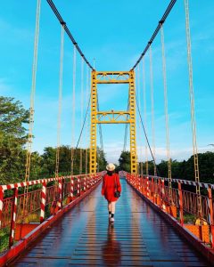 Nằm giữa lòng phố núi, Cầu treo Kon Klor (hay còn gọi là Cầu treo Konklor) đã trở thành một biểu tượng kiến trúc độc đáo và là điểm check-in cầu treo Kon Klor không thể bỏ qua khi du lịch Kon Tum cũ. Với sắc đỏ cam rực rỡ nổi bật trên nền trời xanh biếc, cây cầu này không chỉ là một công trình giao thông mà còn là một tác phẩm nghệ thuật, thu hút hàng ngàn bạn trẻ và du khách đến để ghi lại những khoảnh khắc “sống ảo” ấn tượng.