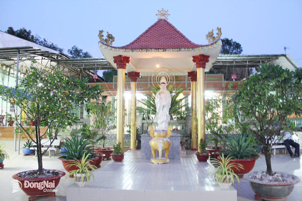 - Tượng Quan Thế Âm Bồ Tát: Đến với Chùa Khánh Lâm, du khách sẽ không khỏi ngỡ ngàng trước vẻ uy nghi của tượng Quan Thế Âm Bồ Tát. Đây là điểm nhấn đặc biệt nhất của chùa, với chiều cao lên đến 17 mét, đứng trên đài sen rực rỡ. Tượng Bồ Tát toát lên vẻ phúc hậu, thanh tịnh, sừng sững giữa không gian linh thiêng, mang đến cảm giác bình an cho phật tử và du khách.